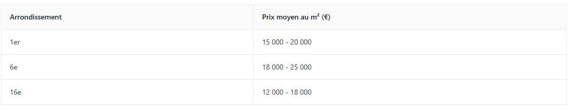 Les prix au mètre carré à Paris varient considérablement selon l'arrondissement, le quartier et le type de bien. En général, il faut compter :